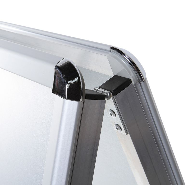 Der Kundenstopper von wdm-scherl in Schwandorf, Regensburg, Nürnberg, Erlangen, Weiden und Amberg überzeugt durch seine hochwertige Verarbeitung und seine stabile Bauweise. Die verbauten RONDO-Ecken minimieren das Verletzungsrisiko und die Schnellwechselrahmen aus Aluminium ermöglichen einen einfachen Austausch Ihrer Plakate.