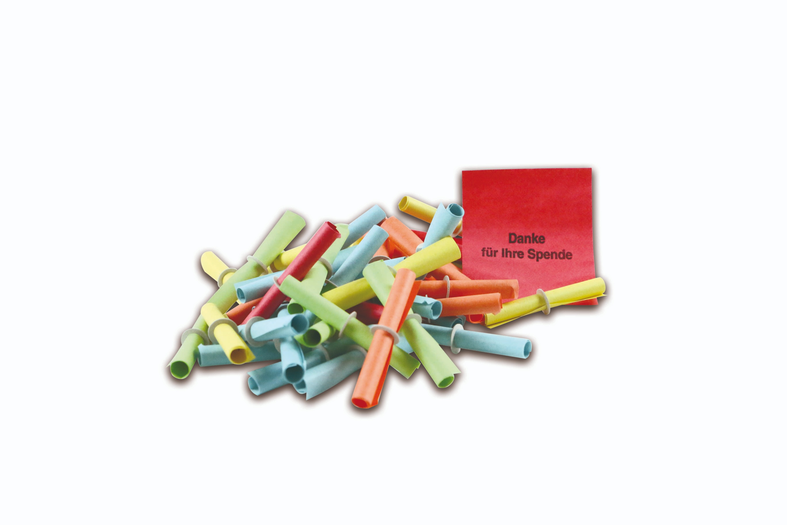 Schon fast 100 Jahre alt, aber noch immer Bestseller - die Röllchenlose von wdm-scherl in Schwandorf, Regensburg, Nürnberg, Erlangen, Weiden und Amberg. Das liegt sicher an ihrer Einfachheit, am Rascheln in der Losbox und an der Spannung beim Öffnen der Lose.