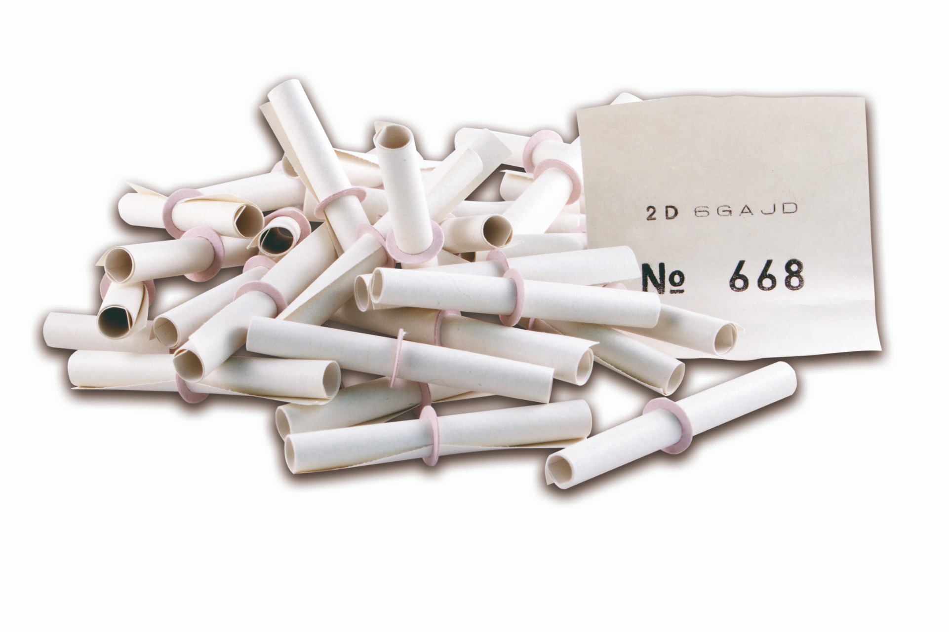 Schon fast 100 Jahre alt, aber noch immer Bestseller - die Röllchenlose von wdm-scherl in Schwandorf, Regensburg, Nürnberg, Erlangen, Weiden und Amberg. Das liegt sicher an ihrer Einfachheit, am Rascheln in der Losbox und an der Spannung beim Öffnen der Lose.