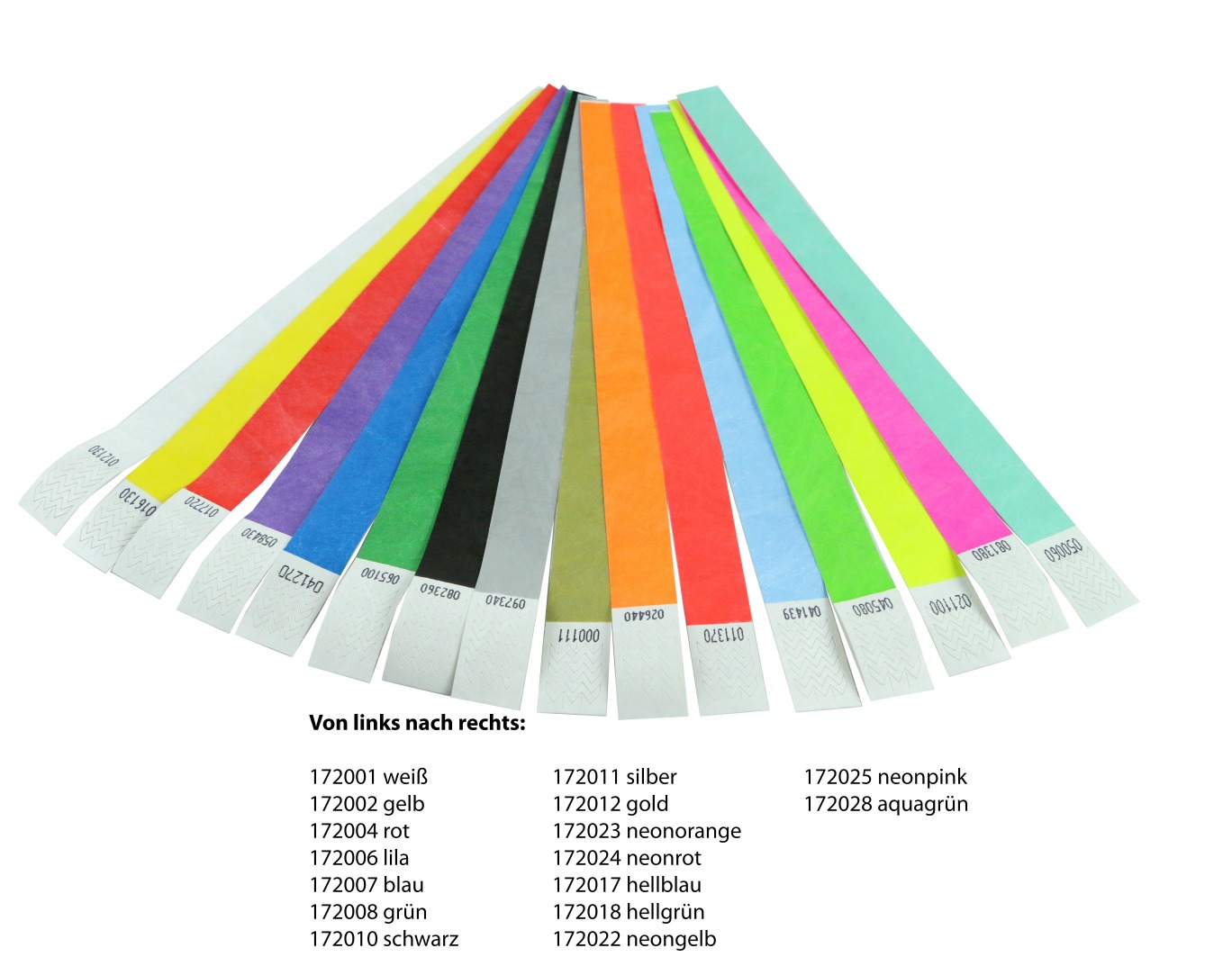 Die praktischen Einlassbänder aus papierähnlichem und reißfestem Tyvek von wdm-scherl in Schwandorf, Regensburg, Nürnberg, Erlangen, Weiden und Amberg werden mit einem Klebestreifen verschlossen. Beim Öffnen des Klebestreifens wird die Perforation am Band zerstört. Somit sind unsere Tyvek-Bänder genau so sicher wie Einlassbänder mit Plastik-Verschluss und nicht übertragbar.