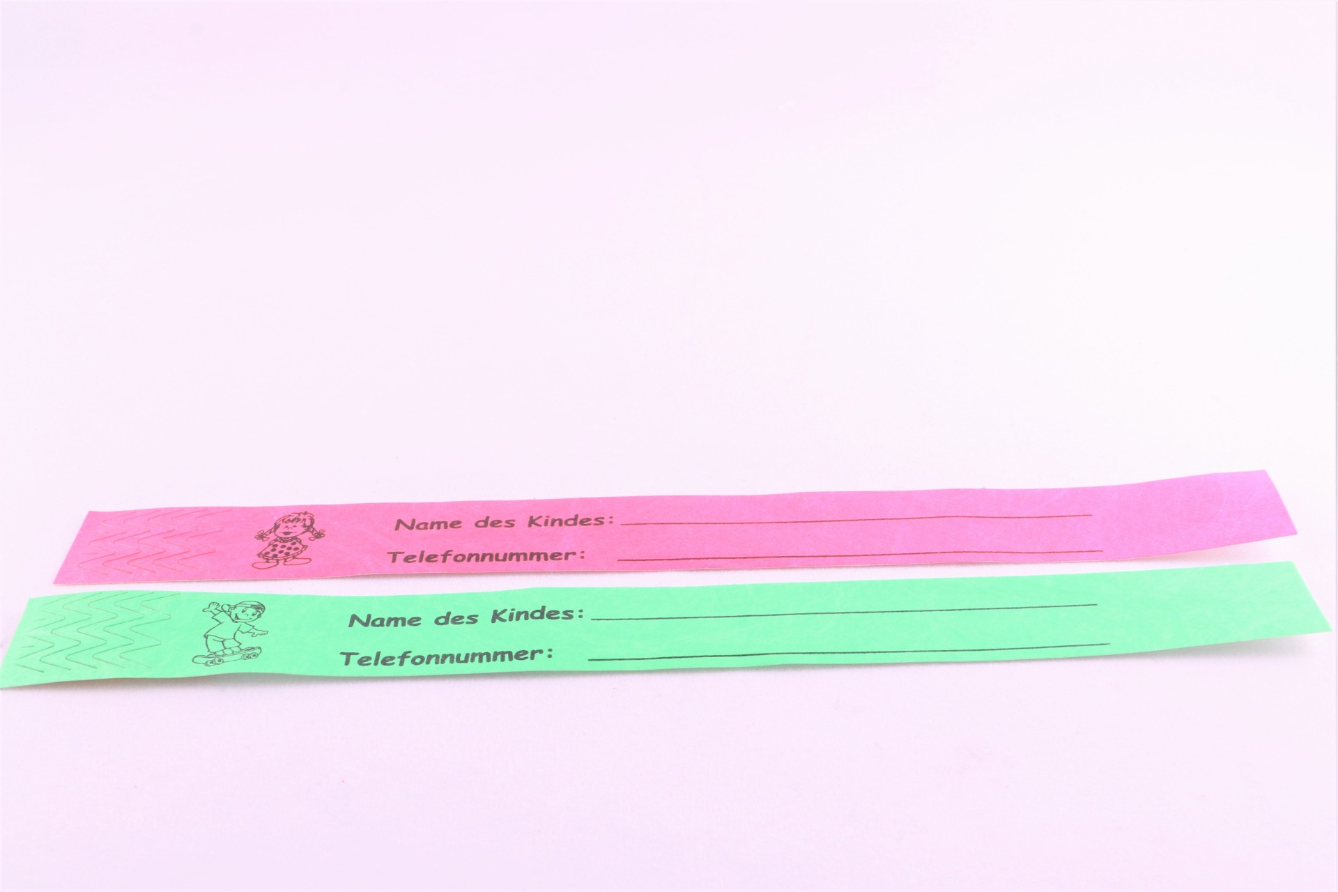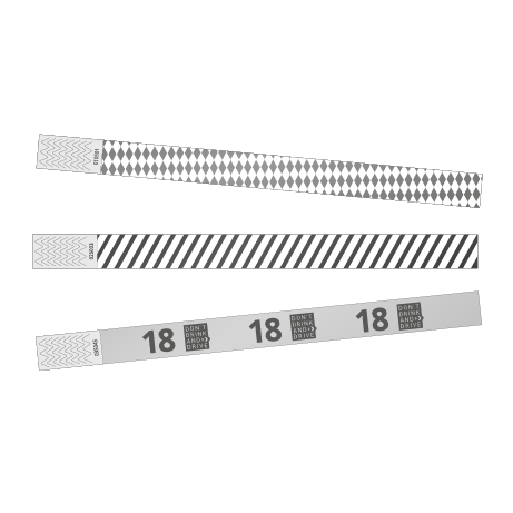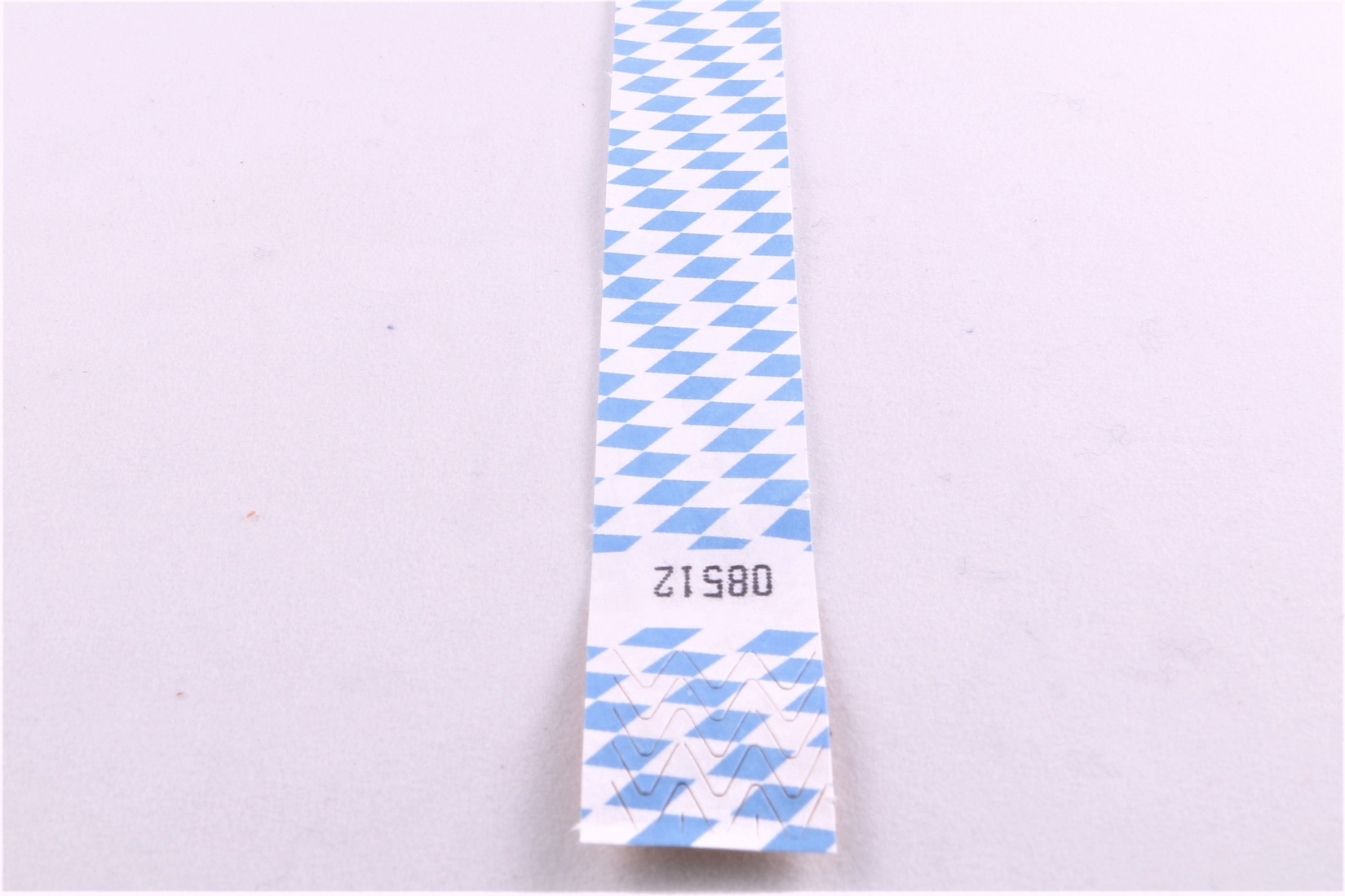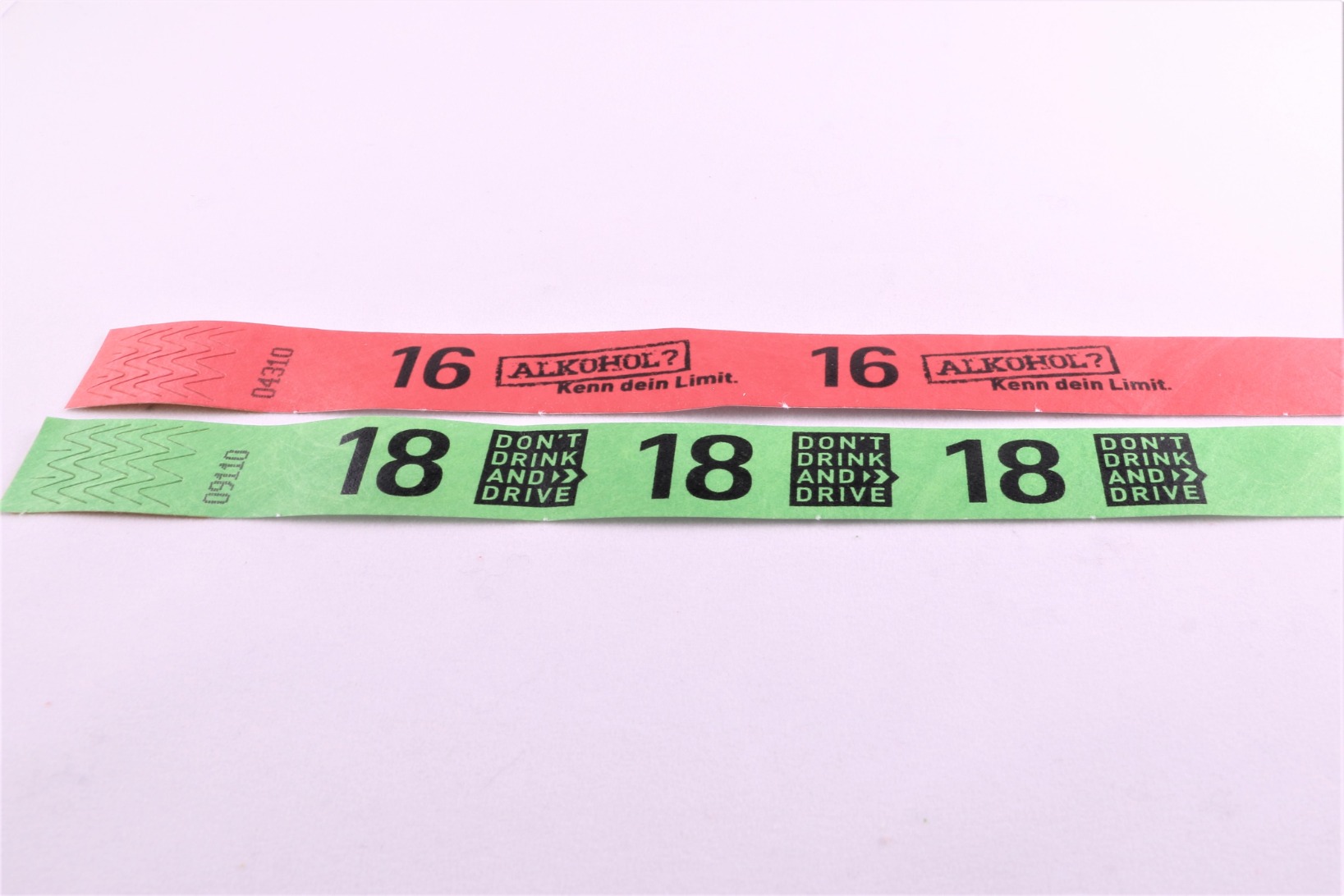 Die praktischen Einlassbänder aus papierähnlichem und reißfestem Tyvek mit vorgefertigten Motiven von wdm-scherl in Schwandorf, Regensburg, Nürnberg, Erlangen, Weiden und Amberg werden mit einem Klebestreifen verschlossen. Beim Öffnen des Klebestreifens wird die Perforation am Band zerstört. Somit sind unsere Tyvek-Bänder genau so sicher wie Einlassbänder mit Plastik-Verschluss und nicht übertragbar.