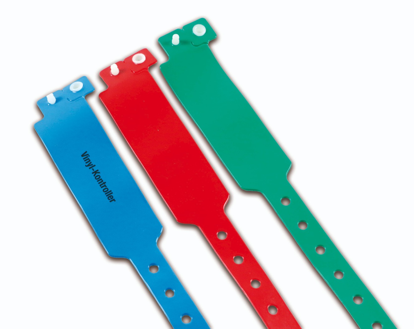 Einlassbänder von wdm-scherl in Schwandorf, Regensburg, Nürnberg, Erlangen, Weiden und Amberg aus Vinyl, höchster Tragekomfort, nicht übertragbar in 21 Farben.